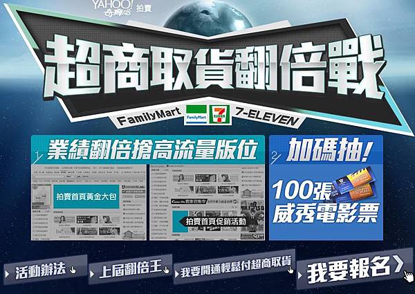 四、競賽+抽獎贈送首頁曝光版面---> Yahoo希望賣家多多開通超商取貨付款服務,尤其是大規模賣家如A、C族群,讓買家可以透過全家與7-11付款。