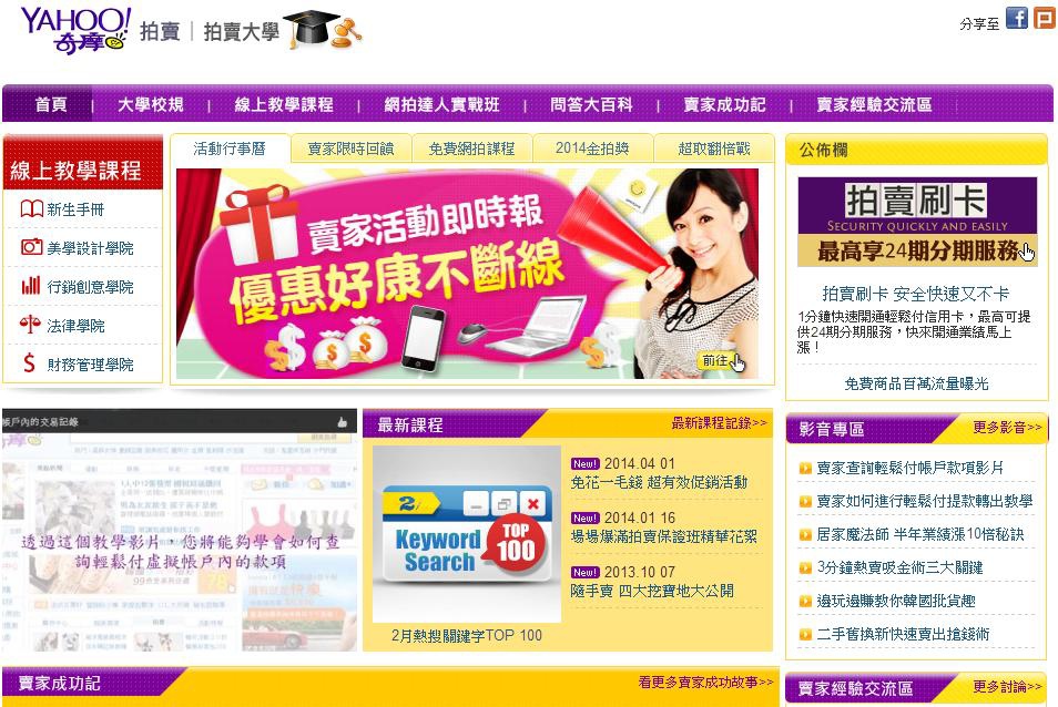 二、網路拍賣教育提供---> 與聯成電腦合作,或者請賣家直接點閱「拍賣大學」,教育內容可轉換為日後的金錢與流量。對於新進入拍賣的AB族群具有些許動力。