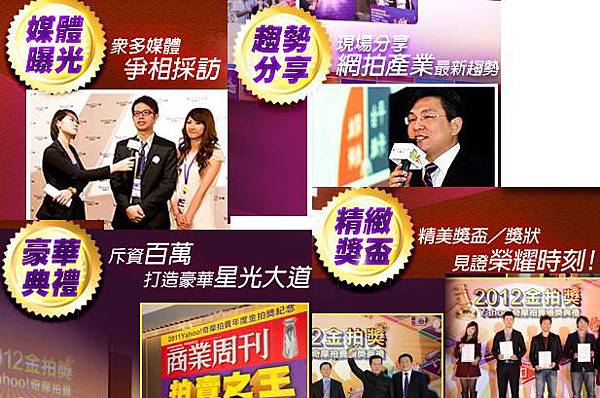 關於這個標題,先來一張不小心做得有點醜的截圖好了XD 醜歸醜,相信這能夠馬上解釋什麼叫做其他榮譽!誰叫它原本的版面真是太大了囉。瞧瞧有媒體採訪,有機會登上商業周刊封面,又有網拍產業趨勢分享,還有豪華影星級的星光大道,最後給你獎杯和獎狀留念...有什麼理由不想風光一下呢?